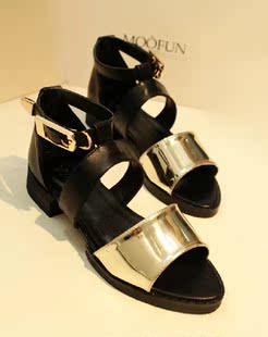 รองเท้า รัดส้นสายเข็มขัดสีทองพื้นดำ เป็นรองเท้าที่ใส่แล้ว ดูดีจริงๆ เรียบหรู ดูดี สไตล์ที่เรียบง่ายมากเหมาะสำหรับการออกเดท, สวมใส่ทำงาน |