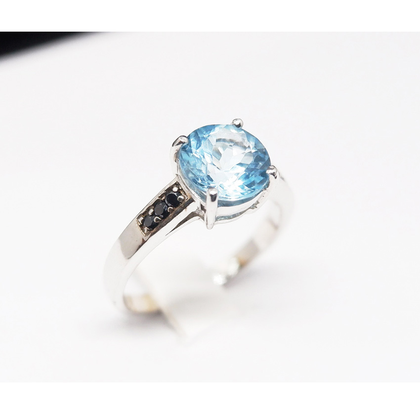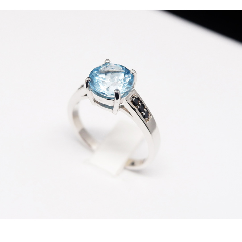 แหวนพลอยบลูโทแพซ Blue Topaz สัญลักษณ์แห่งมิตรภาพ ความเฉลียวฉลาด และความแข็งแกร่ง เงินแท้ชุบเคลือบทองคำขาว สวย เรียบ เก๋