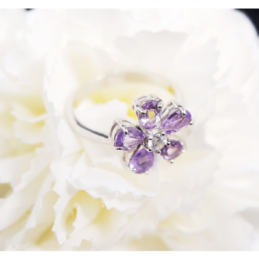 แชร์: 0 แหวนดอกไม้ อเมทิสต์คัดเกรดใสวาวสีสดสวยหวาน ดีไซน์ดอกไม้น่ารัก เหมาะกับสาวๆ วัยทีนหรือวัยทำงานใส่ติดมือได้ทุกวัน