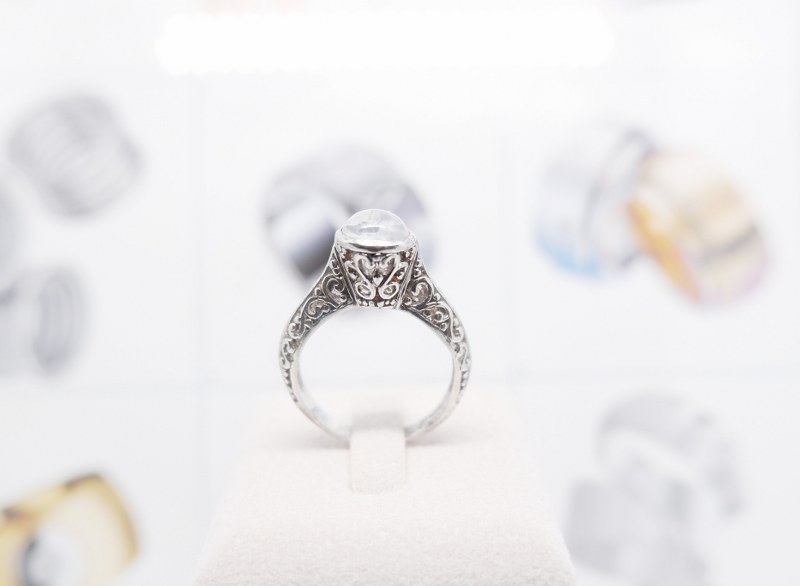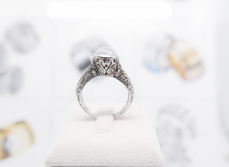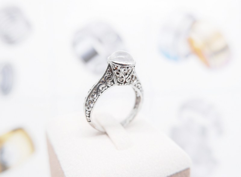 แหวนเงินดีไซน์วินเทจลายฉลุ Silver 92.5% ประดับพลอยแท้ ฺMoon stone ชุบเคลือบทองขาว เรียบ หรู ดูแพง