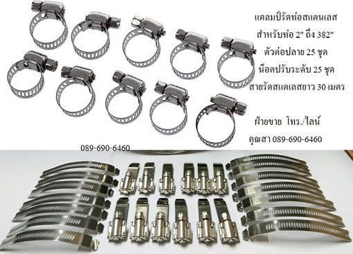เข็มขัดรัดท่อสแตนเลส คลิปรัดท่อสแตนเลส 1ชุด ประกอบด้วย สายรัด ข้อรัดสแตนเลสยาว 30 เมตร น็อตปรับระดับ 25 ชุด ตัวต่อปลาย 25 ชุด