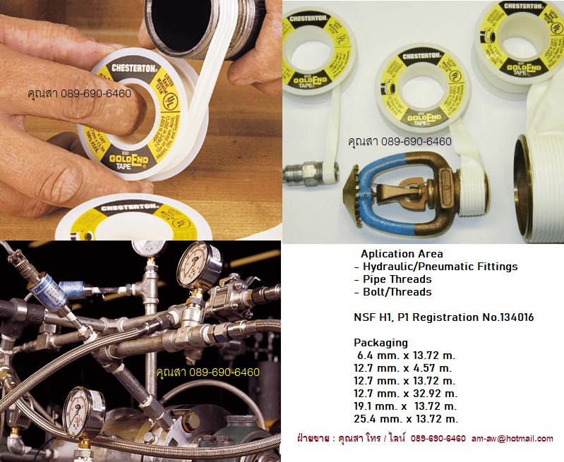 เทปพันเกลียวทนความร้อนสูง เทปพันเกลียวทนเคมี เทปพันเกลียวฟู้ดเกรด CHESTERTON GOLDEN TAPE