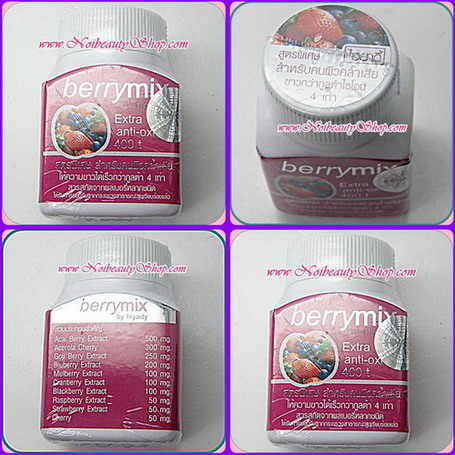 Berrymix  by  Hiyady  Extra White anti-oxidant 400 t สารสกัดจากผลเบอรรี่หลากชนิด สูตรพิเศษสำหรับคนผิวคล้ำเสีย  ให้ความขาวได้เร็วกว่ากลูต้า 4 เท่า  ได้รับการยอมรับจากกระทรวงสาธารณะสุขเรียบร้อยแล้ว