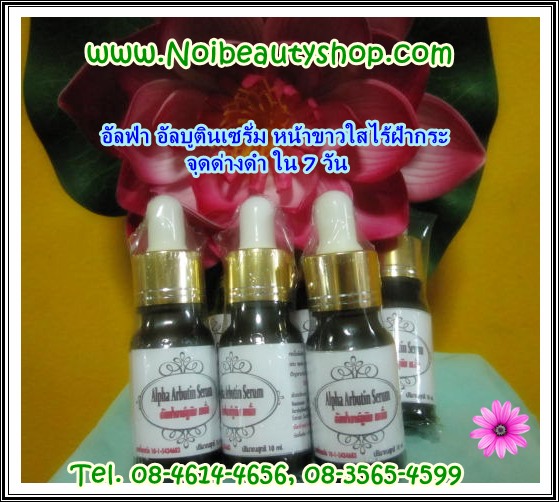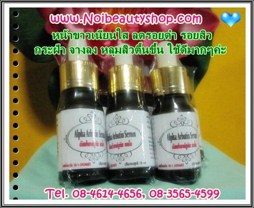 สินค้ามาแรงแห่งปี หน้าเด้ง หน้าใส กระ ฝ้า จาง จำหน่ายปลีกและส่งราคาโรงงาน สาร เร่งความขาว ไม่ต้องยิง ไม่ต้องฉีด ง่าย ง่าย เพียงขั้นตอนเดียว ลิขสิทธิ์เฉพาะจากฝรั่งเศส อาร์บูติน ขวดนี้เพียงขวด เดียว ใช้ทาหลังล้างหน้า เช้า-เย็น เมื่อหน้าขาวใสแล้วให้ลดปริมาณลง หยุดใช้หน้าไม่ดำใช้เพียว ๆ เพื่อเร่งความขาว พร้อมเปิดรับมาตราฐาน ด้านการผลิต ด้วยการนำขึ้นทะเบียนใบรับจดแจ้ง ต่อคณะกรรมการอาหารและยา เพื่อให้ผู้บริโภคได้มั่นใจถึงความปลอดภัย