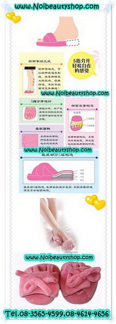 เป็นสินค้า Hot !!! ฮิตติดอันดับเลยค่ะ รองเท้าลดความอ้วนและทำให้ขาสวย เป็นรองเท้าที่ออกแบบมาเพื่อช่วยในการทำให้เรียวขาสวย ให้ใส่ไว้วันละ 10-15 นาทีทุกวัน และใส่เวลาที่ต้องทำกิจกรรมต่าง ๆ ทั่วไปในชีวิตประจำวัน เช่น ทำงานบ้าน เดินเล่น ออกกำลังกาย ทำครัว แค่นั้นก็เป็นการบริหารขาให้สวยได้ง่าย ๆ แล้วค่ะ เพราะรองเท้าจะช่วยให้เราได้ออกกำลังกายไปในตัว เปรียบเสมือนการที่เราเขย่งโดยเปิดเท้าด้านหน้าไว้ตลอดเวลา ท่านี่จะเป็นท่าออกกำลังกายให้กล้ามเนื้อขาเรียวและกระชับขึ้นไงคะ ดังนั้นรองเท้านี้จึงช่วยให้คุณได้บริหารเรียวขา โดยคุณไม่ต้องเสียเวลาบริหารอีก เพราะแค่คุณใส่เดินไปเดินมาก็พอแล้วค่ะ ทำให้ทำกิจกรรมอย่างอื่นได้อีกหลายอย่างในขณะที่ใส่รองเท้า ทำให้ไม่ต้องไปออกกำลังให้เสียเวลาอีก ลักษณะเป็นรองเท้าแตะอยู่บ้าน แบบครึ่งท่อน และเป็นขนสีชมพูเหมือนในรูปค่ะ น่ารักมากเลย