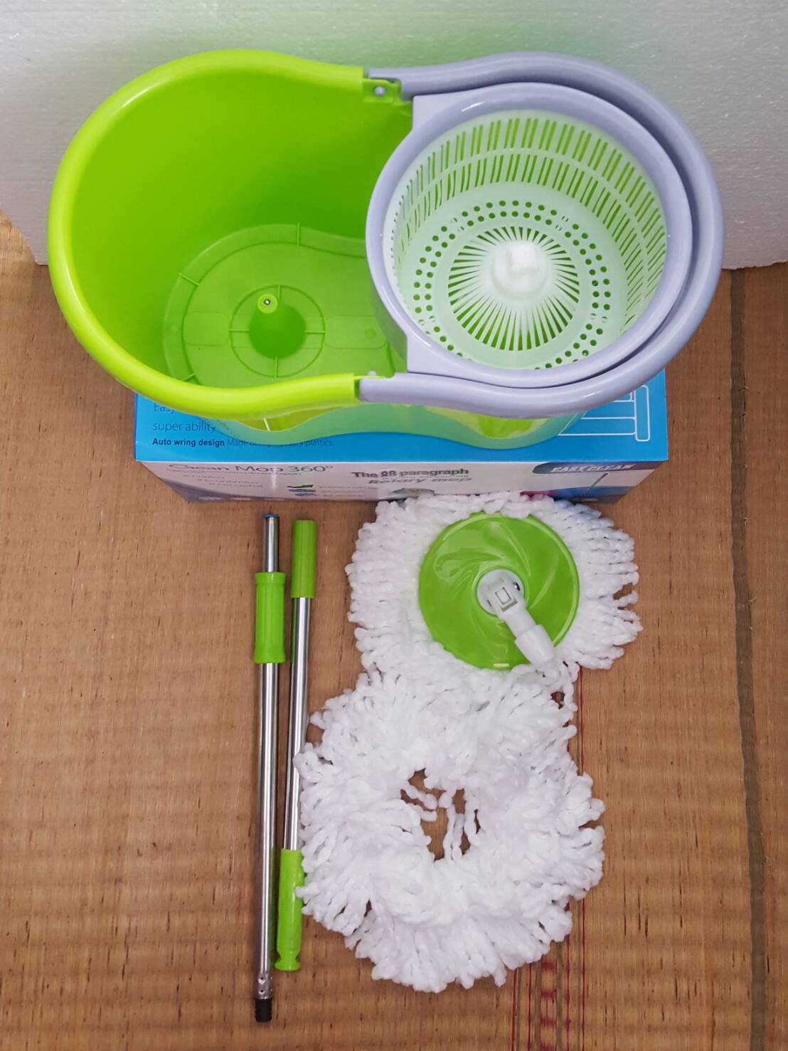 ไม้ม็อบถูพื้นพร้อมถั่งปั่นสีเขียว 360°