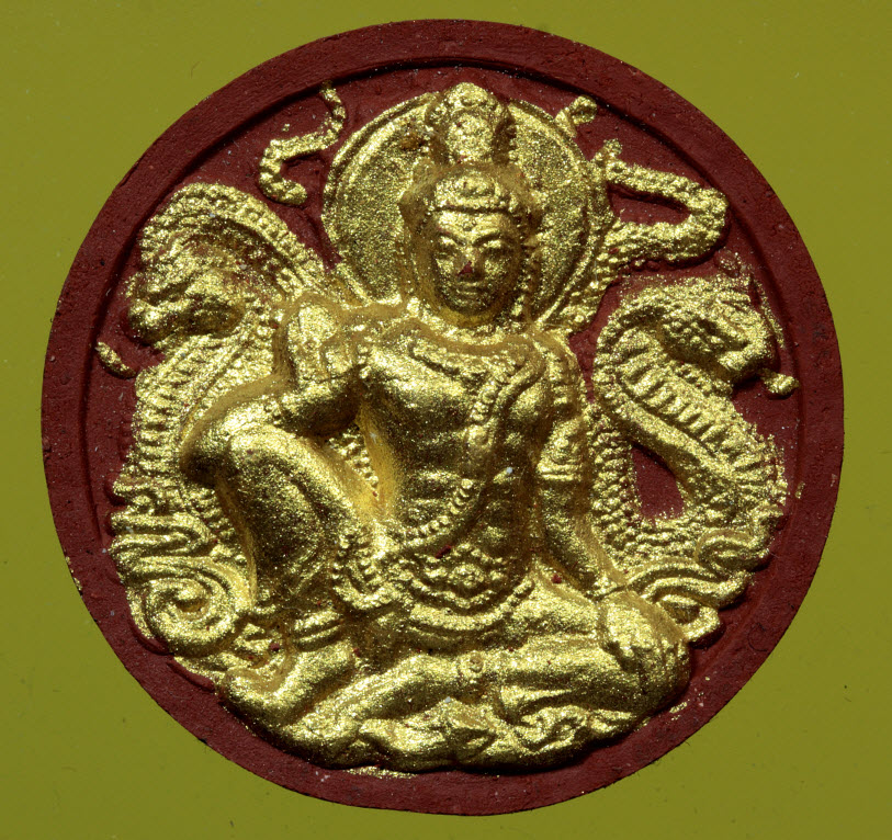 พระผงว่าน ท้าวจตุคาม รามเทพ เนื้อผงว่านมงคลโคตรเศรษฐี 108 พิมพ์กลม ขนาด 3.2 ซ.ม ปัดทอง(มีโค๊ด)