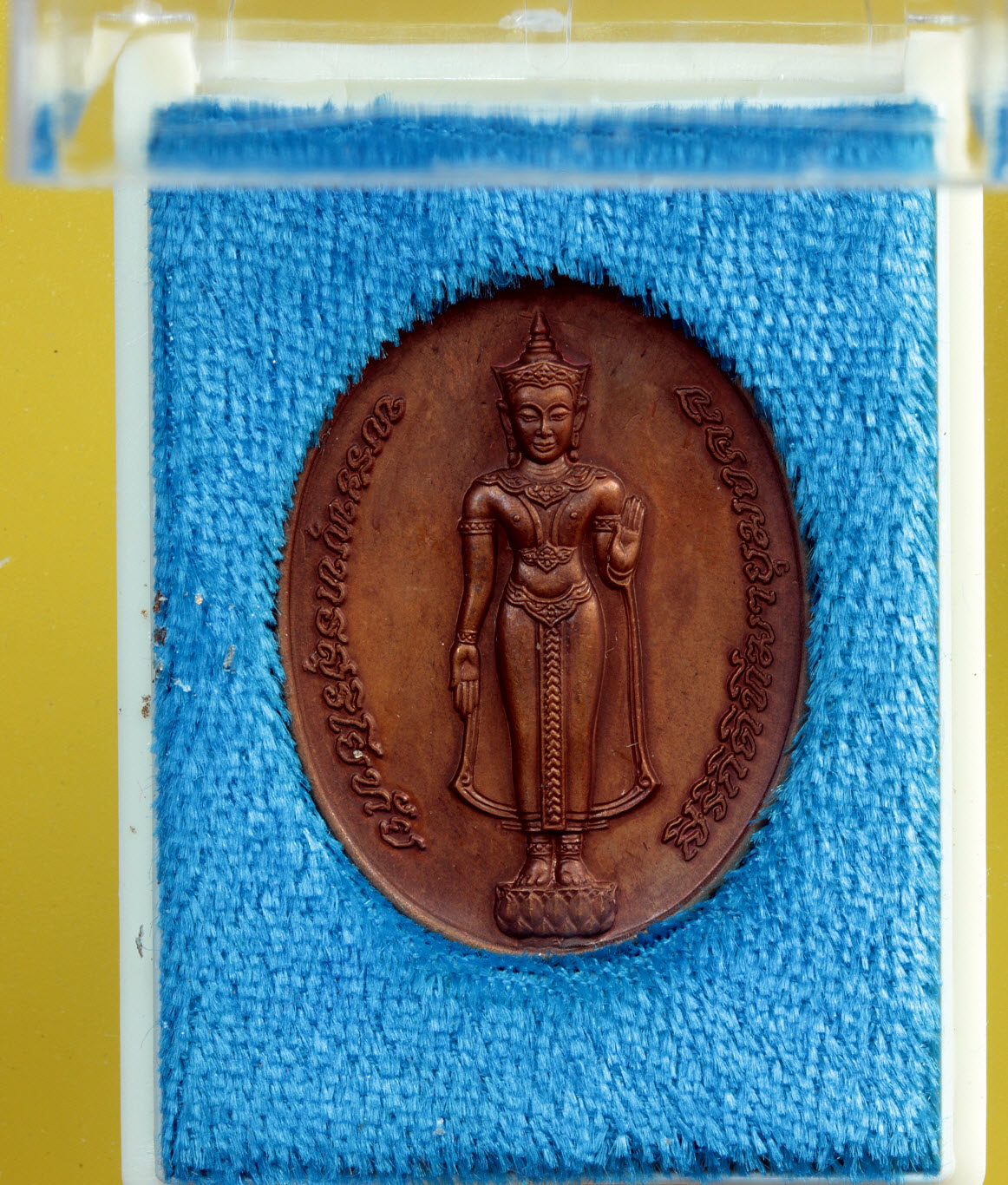 เหรียญรูปเหมือนพิมพ์ยืนเต็มองค์พระพุทธสุริโยทัย ปีพ.ศ. 2534 เนื้อทองแดง