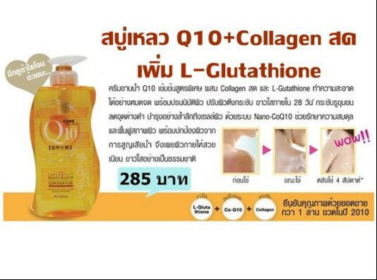 อาบ ผิวขาว ตึงกระชับ ผิวขาวใส ลดจุดด่างดำ ครีมอาบน้ำQ10 เข้มข้นสูตรพิเศษ ผสม collagen สด และ L- glutathione ทำความสะอาดได้อย่างหมดจด พร้อมปรนนิบัติผิว ปรับผิวตึงกระชับ ขาวใสภายใน 28 วัน