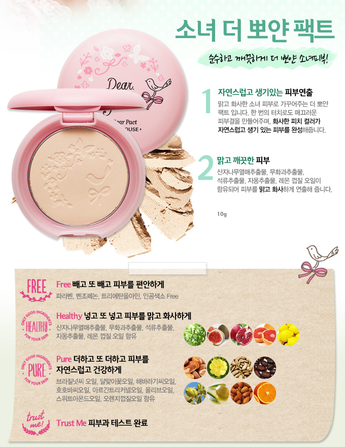 Etude Dear Girls Be Clear Pact แป้งพัฟอัดแข็ง เนื้อบางเบา