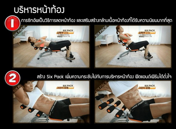 เครื่องบริหาร SIX PACK CARE (ซิก แพค แคร์) เครื่องบริหารลดหน้าท้อง ถูกออกแบบมาเพื่อการบริหารหน้าท้องแบบ 2 ทิศทาง และซิทอัพได้กว่า 180 องศา ช่วยให้การบริหารทำได้อย่างมีประสิทธิภาพกว่าการบริหารบนพื้นถึง 2 เท่า มาพร้อมคุณสมบัติแบบ 6 in1 ในเครื่องเดียว ทั้งบริหารได้ขณะเอนตัวลง และบริหารได้ขณะยกตัวขึ้น ที่เน้นการบริหารกล้ามเนื้อหน้าท้อง , บริหารแบบทวิส ช่วยเน้นการบริหารกล้ามเนื้อข้างลำตัว, บริหารกล้ามเนื้อหน้าท้องส่วนล่างและกล้ามเนื้อต้นขา ,บริหารร่างกายส่วนบนด้วยท่าวิดพื้น, บริหารร่างกายส่วนล่าง ขา และน่อง