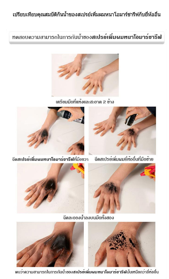 สเปรย์เพิ่มผมหนาโอมาร์ ชารีฟ ผลิตจากผงถ่านไม้ไผ่ ซึ่งศูนย์วิจัย โอมาร์ชารีฟปารีสได้วิจัยแล้วว่า ผงไม้ไผ่มีโมเลกุลที่เล็กกว่าผงถ่านจากไม้อื่นๆ คุณสมบัติของผงถ่านจากไม้ไผ่ยังมีประสิทธิ์ภาพในการสะท้อนรังษี UV จากเเสงเเดด เเละช่วยเพิ่มการไหลเวียนของเลือดลมบนหนังศีรษะได้เป็นอย่างดี (จากศาสตร์เเผนโบราณ ) อีกทั้งยังมีคุณสมบัติกันน้ำได้ จึงไม่มีปัญหาเมื่อต้องโดนน้ำโดยไม่ตั้งใจ สาเหตุที่โอมาร์ชารีฟสเปร์สามารถปิดผมบางศีรษะล้านความสมจริงมีถึง 98% เนื่องจากผงถ่านจากไม้ไผ่ที่ใช้เป็นส่วนประกอบหลักของผลิตภัณฑ์นั้น ได้ผ่านกระบวนการสกัดผงถ่านด้วยเทคโนโลยีชั้นสูงที่ต้องใช้กระบวนการผลิตที่ สับซ้อน เพื่อให้ได้ผงถ่านจากไม้ไผ่มีความบริสุทธิ์มากขึ้นเเละต้องทำให้ผงถ่านมี อนุกูลที่เล็กกว่านาโน ทำให้การมองเห็นด้วยตาเปล่าของมนุษย์เราไม่สามารถเเยกเเยะได้นั้นเอง นี่คือคำตอบที่ว่าทำไมสเปรย์เพิ่มผมที่ฉีดลงบนหน้งศีรษะเพื่อเพิ่มผมหนาไม่สามารถสังเกตได้ด้วยตาเปล่า ทำให้แลดูเป็นธรรมชาติและกลมกลืนไปกับเส้นผม
