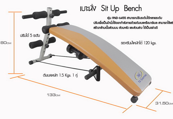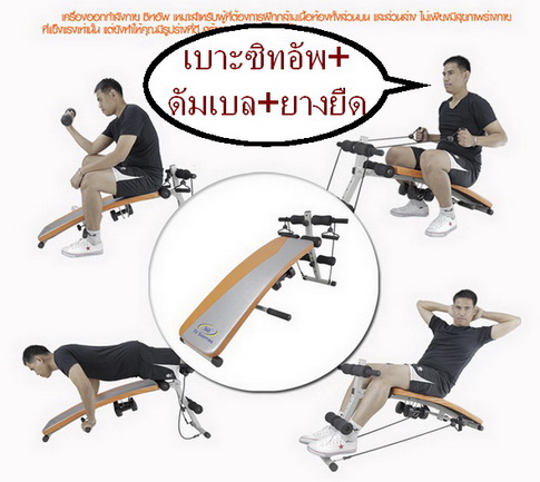 เบาะซิทอัพ เตียงซิทอัพ ม้าซิทอัพ รุ่นใหม่ Fitness Sit Up มาพร้อมดัมเบลและยางยืดครบชุด เบาะสามารถปรับระดับได้หลายระดับ เป็นอุปกรณ์ใช้เสริมสร้างกล้ามเนื้อส่วนบน ส่วนหลัง และส่วนล่าง และลดหน้าท้องได้เป็นอย่างดี สามารถออกกำลังในท่าต่างๆได้หลายท่า ช่วยมีรูปร่างฟิตเฟิร์มได้อย่างรวดเร็ว ใช้ได้ทั้งผู้ชายและผู้หญิง