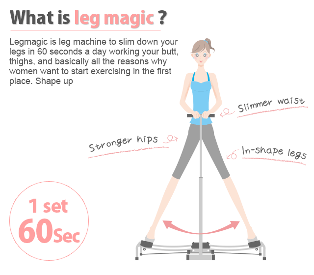 เครื่องออกกำลังบริหาร leg magic จะช่วยบริหารกระชับต้นขาด้านใน ต้นขาด้านนอก ช่วงขา น่อง หน้าท้องและสะโพก ช่วยให้คุณมีช่วงขาที่เพรียวสวย และสะโพกที่กระชับ
