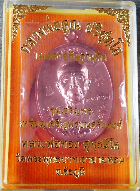 | เหรียญเจริญพรหลวงพ่อทองรุ่น1บล็อกทองคำนิยมตอกโค๊ต9สวยงามครับอนาคตไปไกล |