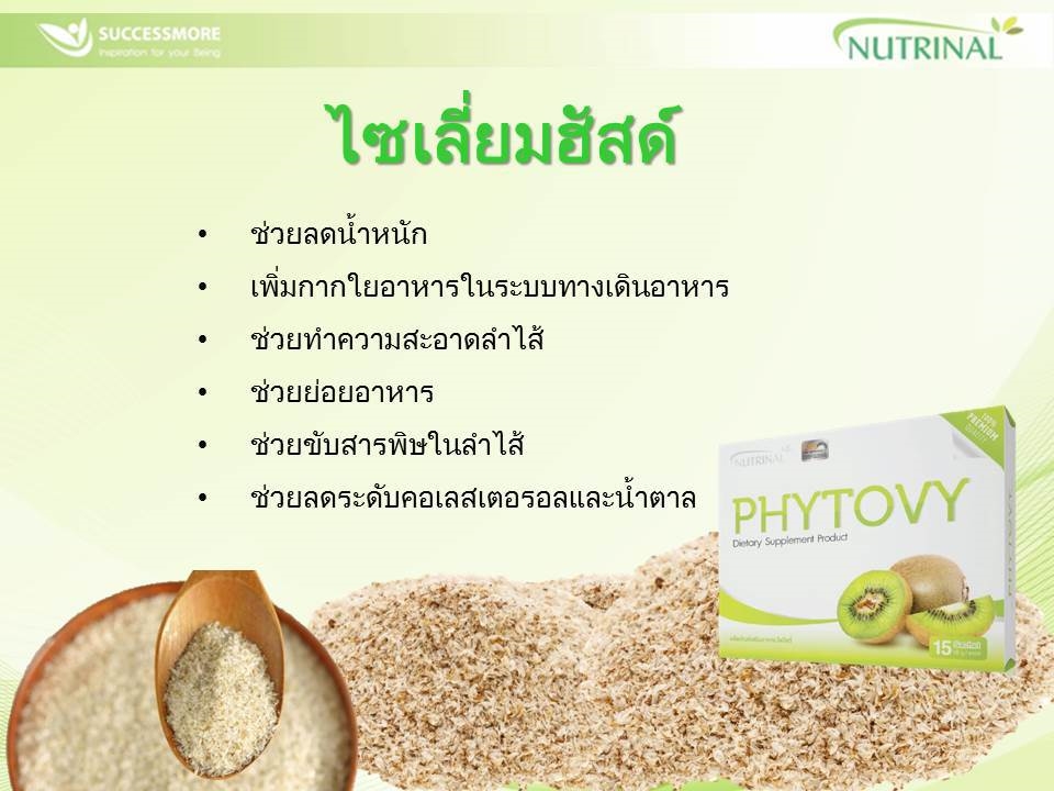 ผลิตภัณฑ์เสริมอาหารไฟโตวี่ เสริมใยอาหาร ดีต่อระบบขับถ่าย ล้างสารพิษในลำใส่ ป้องกันมะเร็งลำไส้ใหญ่ และช่วยควบคุมน้ำหนัก