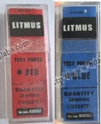 กระดาษลิตมัส ผลิตในประเทศจีน 100 แผ่นต่อกล่อง (5เล่มๆละ 20 แผ่น ขนาด 0.5x5.5 ซม.) บรรจุในกล่องพลาสติกใส สีแดงใช้สำหรับทดสอบสภาพความเป็นด่าง pH > 8.3 โดยเปลี่ยนจากสีแดงเป็นน้ำเงิน ส่วนสีน้ำเงินใช้สำหรับทดสอบสภาพความเป็นกรด pH < 4.5 โดยเปลี่ยนจากสีน้ำเงินเป...