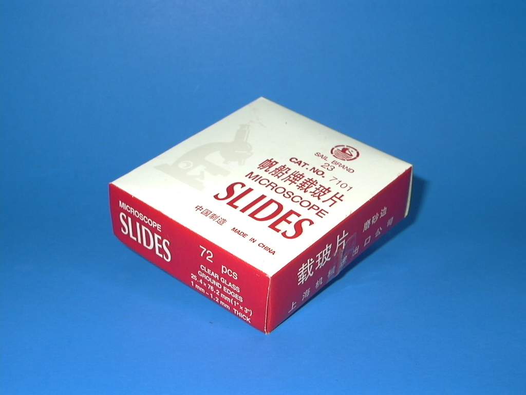 กระจกสไลด์ขอบฝน ขนาด 1x3 นิ้ว (72 แผ่นต่อกล่อง) ผลิตในประเทศจีน