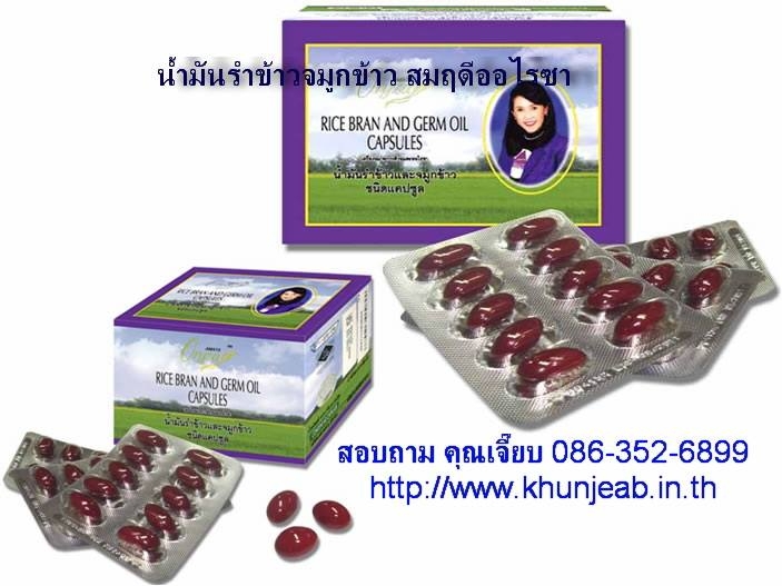 น้ำมันรำข้าวและจมูกข้าว ชนิดแคปซูล ขนาดรับประทาน: 1 แคปซูลจะได้สารอาหาร 15 ชนิด หรือเท่ากับ รับประทานข้าวกล้อง 5 กิโลกรัม