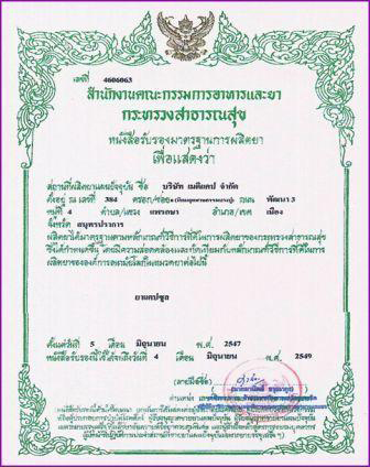 โรงงานผู้ผลิต: บริษัท เมก้า ไลฟ์ไซแอ็นซ์ จำกัด