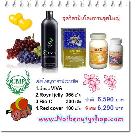 *พร้อมส่ง*เซทวิตามินโดมทานชุดใหญ่ คุ้มสุดๆๆ สวยใส สุขภาพดี น้ำองุ่น VIVA 1 ขวด+ Royal jelly 365 เม็ด +Bio C และ red cover ทานได้ 1 ปี แถมฟรีน้ำมันปลาฉลาม ถูกมากๆ ของแท้ 100%