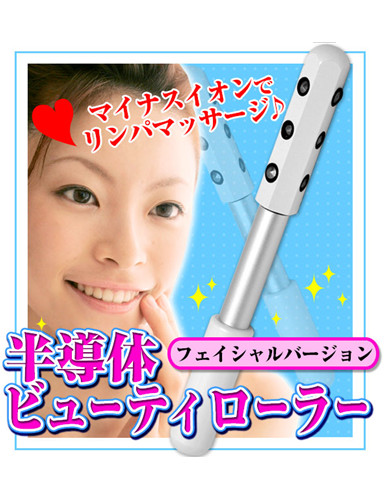 Semiconductor Beauty Roller semiconductor consists of silicon and titanium oxide ceramics fused, with a negative charge potential of 200 millivolts. The tapping massage rotation angle of the six lines while providing a sharp face, acupuncture, and gloss can be realized. The effective use of the bath to rise. Ultraviolet light, and we stress the «Rust» lost electrons by oxidation that has been said to cause wrinkles aging spots. Semiconductor replenish lost electrons, to remove the rust of the body instantly make your skin vividly to life as beyond recognition.