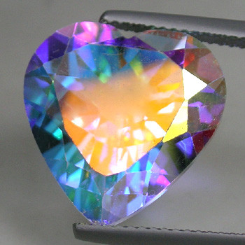 17.4 กะรัต พลอย Blue Neptune Rainbow Mystic Topaz รูปหัวใจ (สี-บลูเนปจูน) 18mm.สวย น่าสะสม