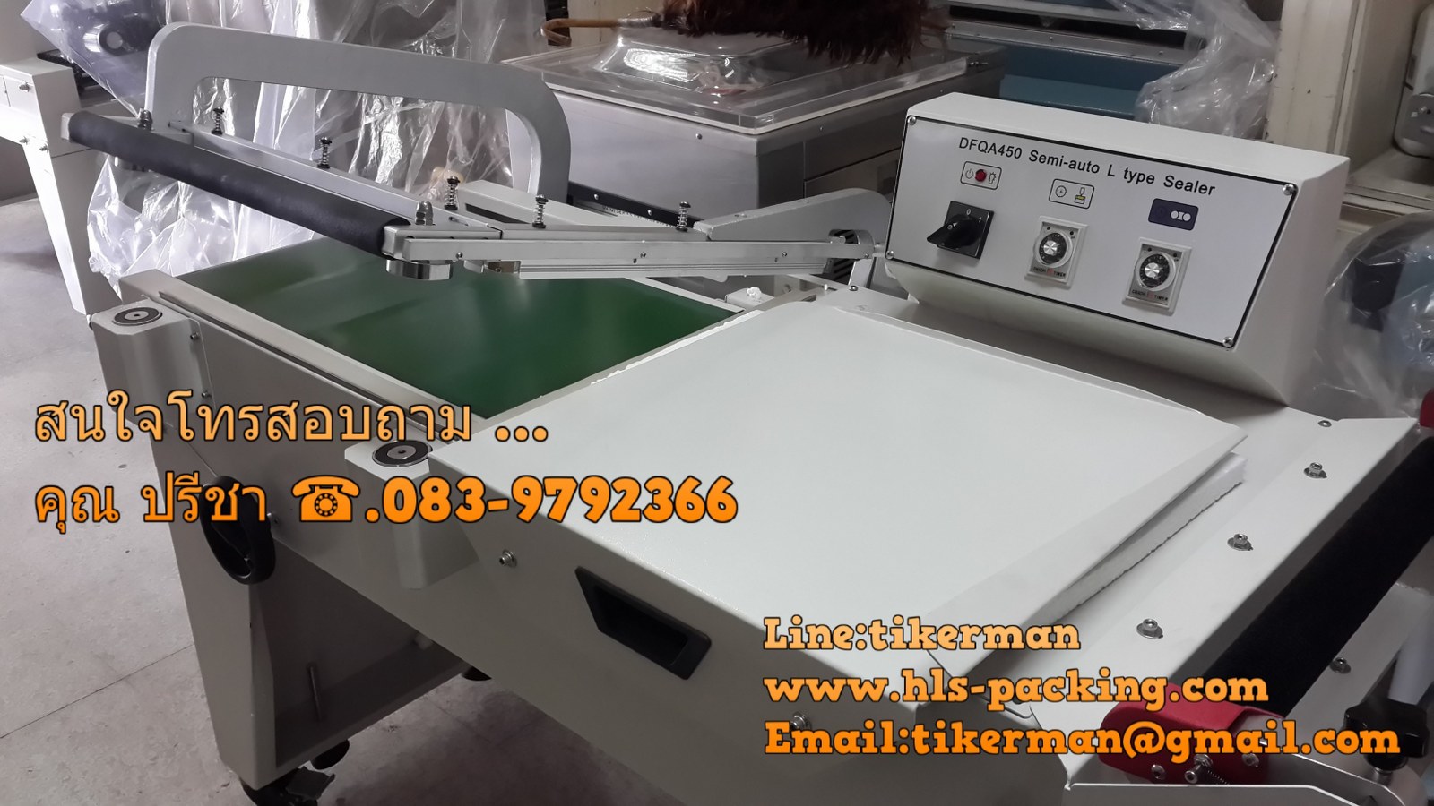 DFQA-450เป็นเครื่องตัดฟิล์มหดแบบตัว L(L-Seal)โดยใช้มือกดเครื่องจะตัดฟิล์มอัตโนมัติและมีสายพานลำเลียงชิ้นงานเข้าเครื่องอบฟิล์มหด เหมาะสำหรับฟิล์มเป็นม้วน ให้หุ้มรอบชิ้นงาน เพื่อป้องกันการแกะสินค้าและป้องกันรอยที่ชิ้นงานเพิ่มความสวยงามกับงานยิ่งขึ้น เพิ่มสะดวกและประหยัดค่าใช้จ่าย สามารถทำการห่อและซีลตัดในขั้นตอนเดียวกัน อีกทั้งยังสะดวก รวดเร็วด้วยสายพานจะลำเลียงวัสดุที่ตัดและซีลแล้ว เข้าตู้อบฟิล์มหดให้เองอัตโนมัติ เมื่อแขนซีลยกขึ้น