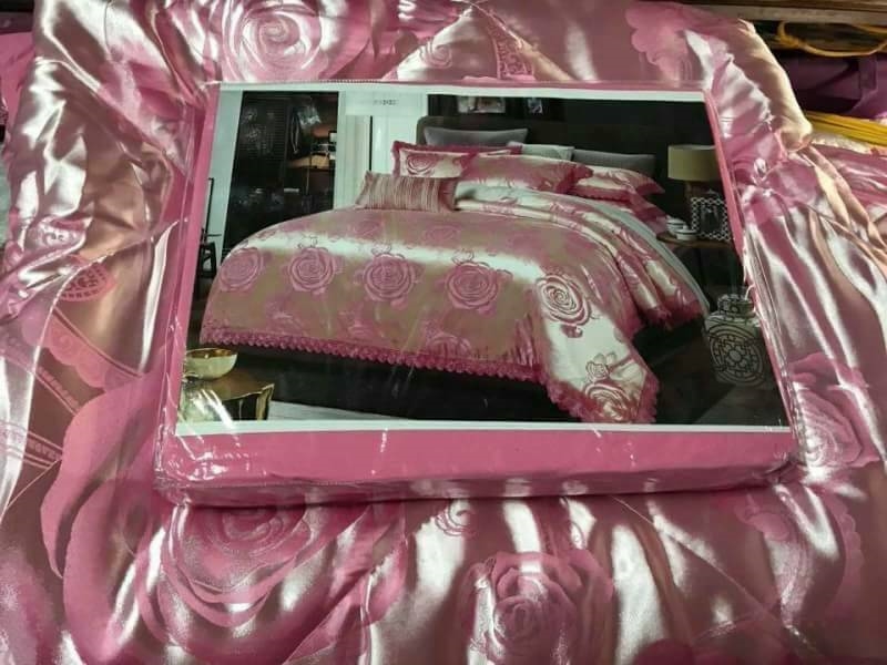 ชุดผ้าปูที่นอน ผ้าแพร ขนาด 6 ฟุต พร้อมผ้านวม สีชมพู