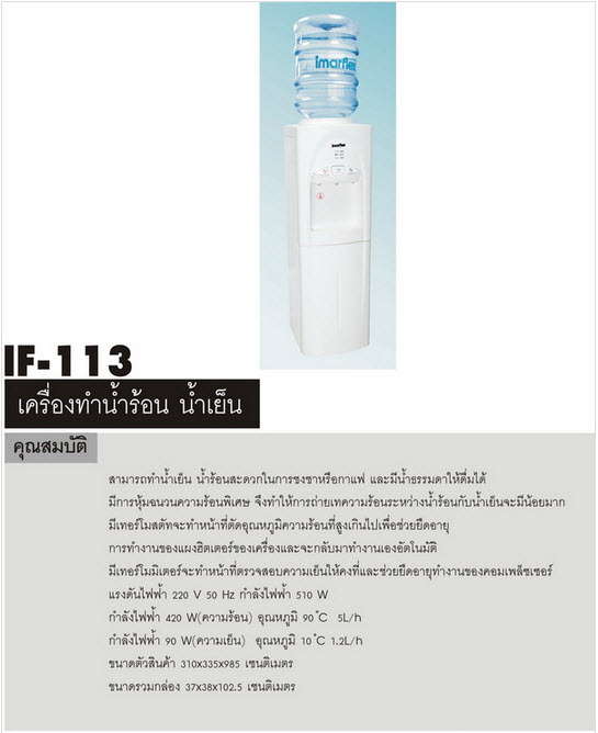 เครื่องทำน้ำร้อน น้ำเย็น Imarflex รุ่น IF-113