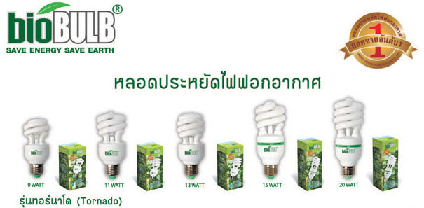 | BioBULB คือหลอดไฟฟอกอากาศ โดยการปล่อยประจุลบออกมาด้วยเทคโนโลยี่ชั้นสูงจากประเทศเกาหลี ที่ช่วยปรับสภาพอากาศภายในห้องหรือสถานที่ต่าง ๆ ตามที่คุณต้องการโดยไม่ต้องขนย้าย หรือใช้เครื่องฟอกอากาศราคาแพง ๆ และกินไฟเยอะเพียงแตท่านเปลี่ยนมาใช้หลอดฟอกอกาศของ BioBULB ที่ได้รับการรับรองจากสถาบันต่าง ๆทั่วโลกและยังได้รับมาตรฐานอุตสาหกรรม (มอก.) เป็นเจ้าแรกและเป็นเจ้าเดียวในประเทศไทย BioBuib ไม่เพียงแต่ให้แสงสว่างแต่ยังช่วยฟอกอากาศลดมลพิษต่าง ๆ ฆ่าเชื้อเบคทีเรีย ลดการติดเชื้อทางระบบหายใจและยังช่วยสร้างภูมิคุ้มกันให้กับร่างกายอีกด้วย