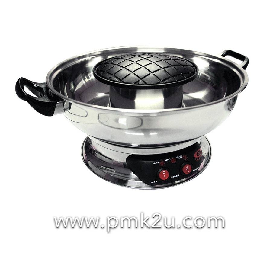 หม้อสุกี้ 2 IN 1 รุ่น MK-905ผลิตจากสเตนเลสอย่างดี ทนทาน ไร้สนิม กระจายความร้อนได้ดี มาพร้อมฝาแก้วทนความร้อน