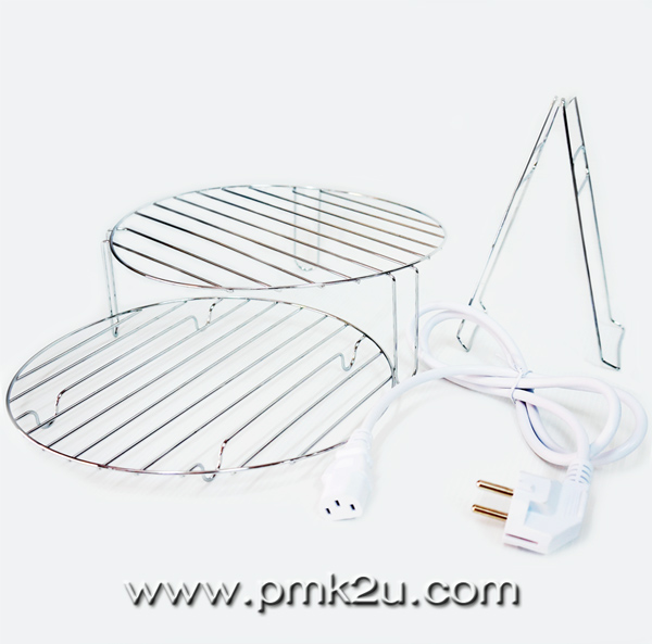- มีตะแกรงให้ 2 แบบ (แบบเตี้ย และ สูง) และที่คีบยกตะแกรงอาหาร 1 อัน