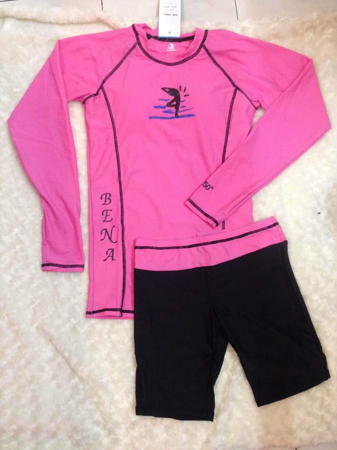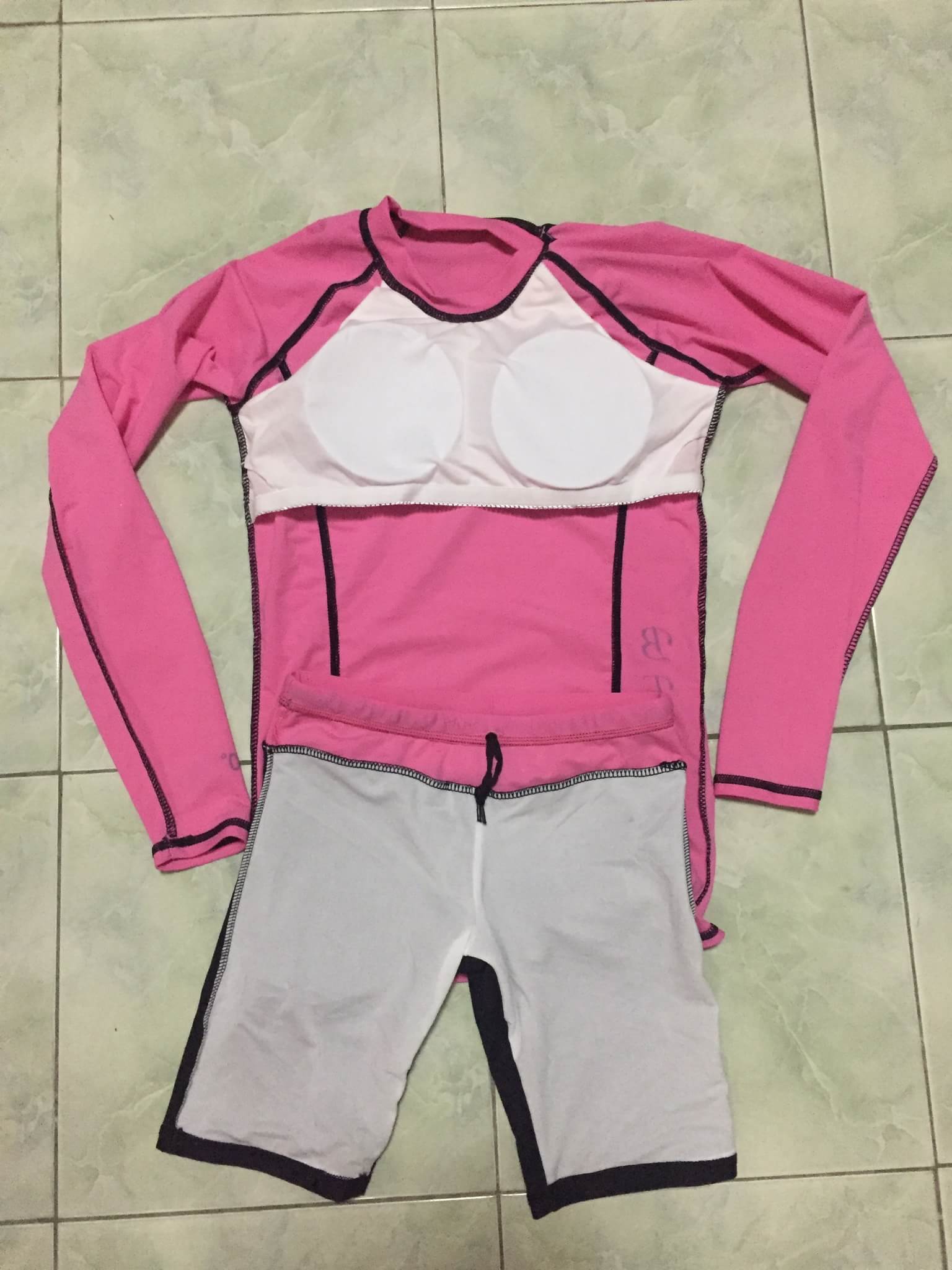 ชุดว่ายน้ำแขนยาว มีฟองน้ำ มีซับใน ความยาวเสื้อประมาณสะโพก กางเกงขาสามส่วน มีเชือก มีซับใน สีขอบกางเกงตามสีเสื้อ ผ้า lycra อย่างดี กัน UV มี 7 สี - ฟ้า / ชมพู / ม่วง / เขียว / น้ำเงิน /ส้ม / แดง Size M - XXL ไซส์โดยประมาณ (นิ้ว) ไซส์ M รอบอก 28-35" / เอว 22-27" / สะโพก 32-37" ไซส์ L รอบอก 30-37" / เอว 24-30" / สะโพก 35-39" ไซส์ XL รอบอก 32-39" / เอว 27-41" / สะโพก 37-44" ไซส์ XXL รอบอก 34-42" / เอว 29-44" / สะโพก 39-48"