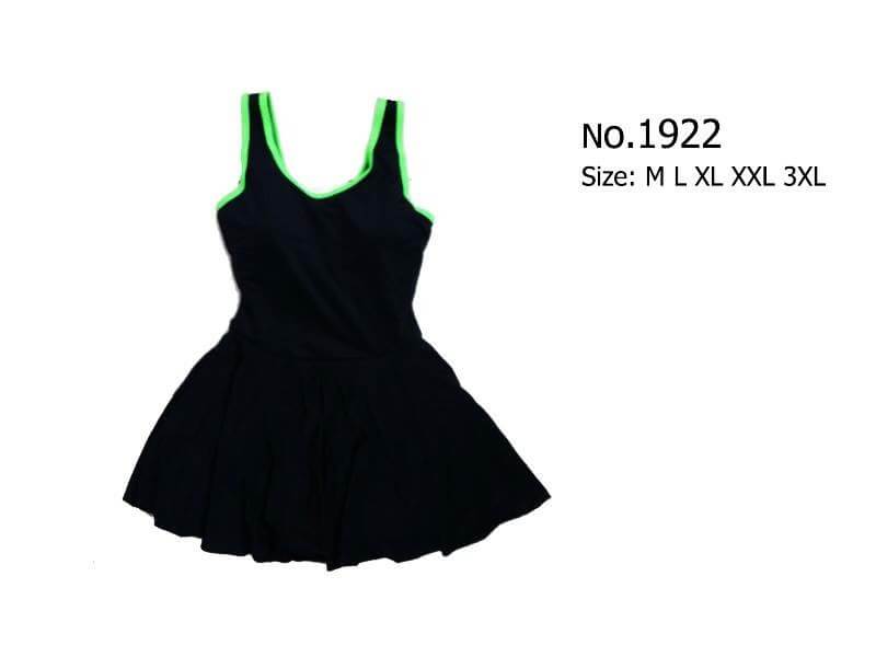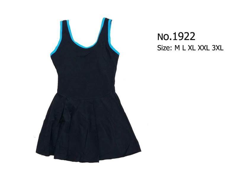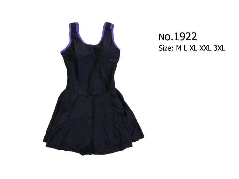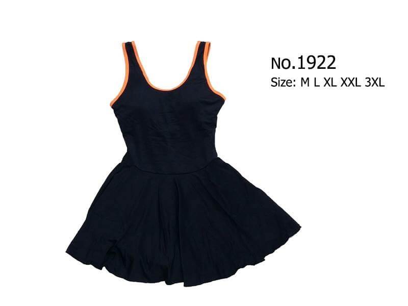 ชุดว่ายน้ำวันพีซสไตล์สุดคลาสสิคใส่ได้ทุกวัย ช่วงบนเป็นทรงสปอร์ตเกิร์ลด้านหลังเป็นกล้ามสปอร์ต ผ้าโพลีเอไมด์ผสมเนื้อยืด น้ำหนักเบา อกมีฟองน้ำ ถอดเข้าออกได้ ช่วงกระโปรงด้านในเป็นกางเกงขาสั้น มีกุ๊นขอบ 7สี พื้นดำกุ๊น - ขาว / ชมพู / น้ำเงิน / ฟ้า / ม่วง / ส้ม / เขียว