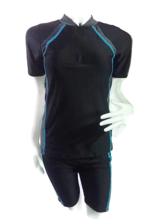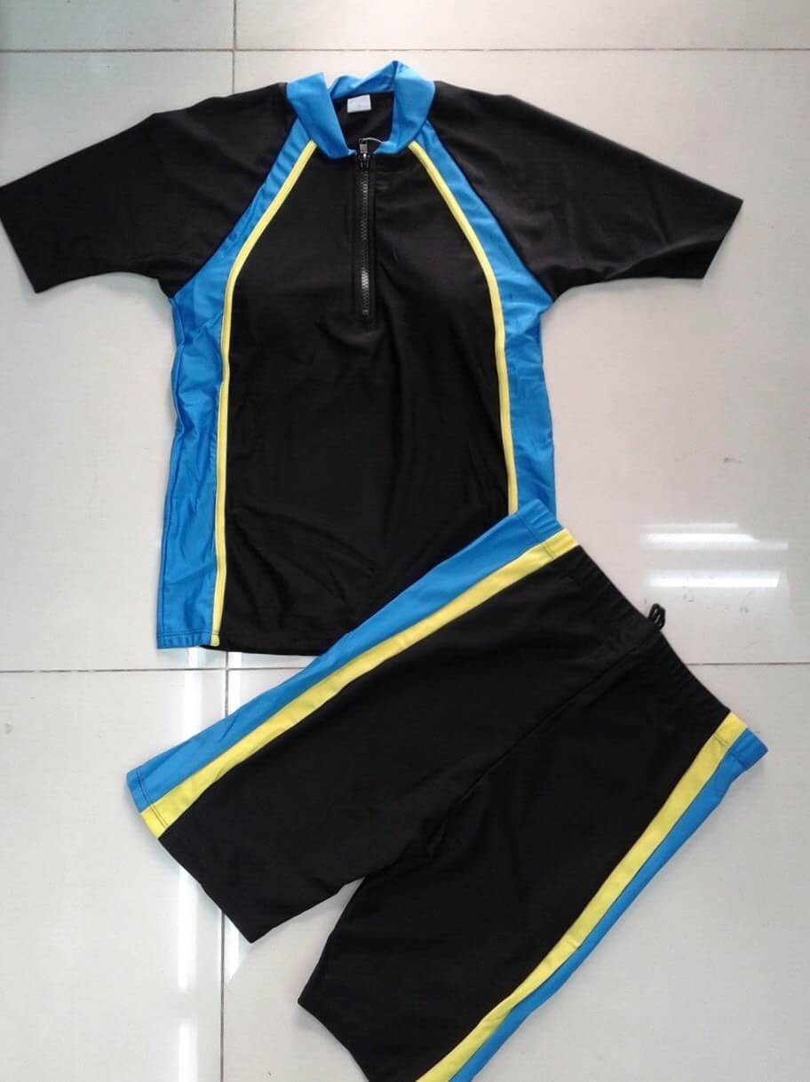 เสื้อเป็นแบบแขนสั้น มีซิปด้านหน้าช่วงอก กางเกงขาสั้นยาวประมาณเข่า เสื้อมีฟองน้ำ สามารถถอดออกได้ กางเกงมีเชือกผูกด้านในใส่กระชับคล่องตัว ผ้า lycra อย่างดี ใส่ได้ทั้งผู้หญิงและผู้ชาย มี 5 สี - เทา / ฟ้า / แดง / ชมพู /น้ำเงิน ไซส์ M-3XL M อก 30-38" เอว 24-34" สะโพก 32-36" กางเกงยาว 17" L อก 32-42" เอว 26-36" สะโพก 34-38" กางเกงยาว 18" XL อก 34-44" เอว 28-38" สะโพก 36-42" กางเกงยาว 19" 2XL อก 36-46" เอว 30-40" สะโพก 38-44" กางเกงยาว 20" 3XL อก 38-48" เอว 32-42" สะโพก 38-46 กางเกงยาว 21"