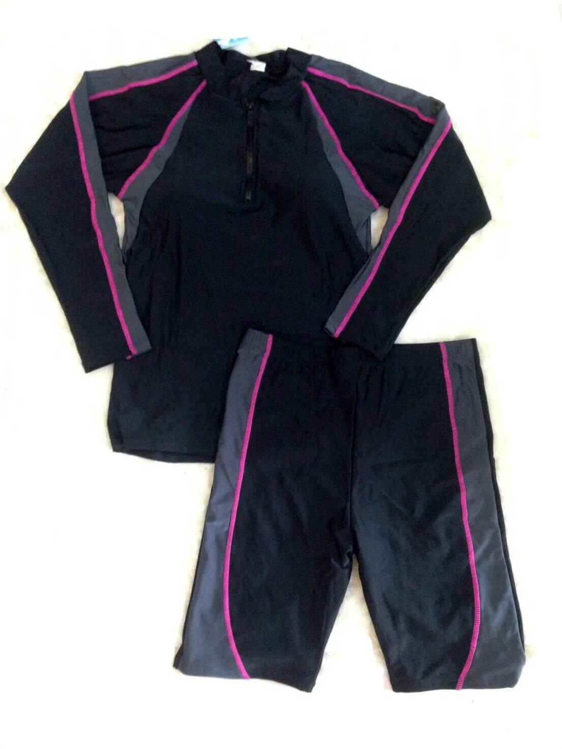 เสื้อเป็นแบบแขนยาว มีซิปด้านหน้าช่วงอก กางเกงขาสั้นยาวประมาณเข่า ผ้า lycra อย่างดี ใส่ได้ทั้งผู้หญิงและผู้ชาย มีซับในทั้งเสื้อและกางเกง มีฟองน้ำ สามารถถอดออกได้ มี 5 สี - เทา /น้ำเงิน /ฟ้า /แดง /ชมพู ไซส์ M-3XL