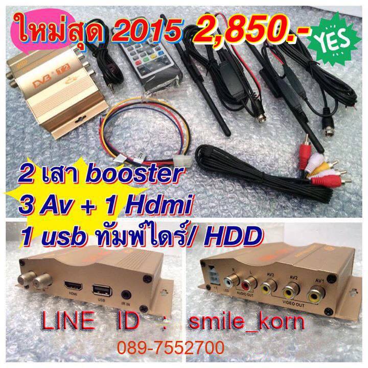 กล่องทีวีดิจิตอลติดรถยนต์ รุ่นใหม่ล่าสุดมีสองเสา ที่มีบุทเตอร์ในตัวรับสัญญาณได้ดีขึ้น แม้ในขณะที่ระ...