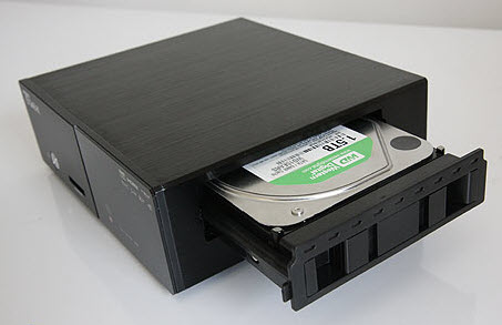 ในส่วนของการถอดหรือใส่ HDD นั้นไม่ว่าจะมือใหม่หรือมือเก่าก็ใช้งานได้ง่ายนิดเดียว ถ้าหากเราต้องการที่จะถอดหรือใส่ HDD นั้นเพียงแค่เราใช้นิ้วไปบีบที่ตัวล็อกแล้วดึง (หากต้องการถอด) และดันเข้า (หากต้องการใส่) จากนั้นเราก็ปล่อยนิ้วตัวล็อกมันจะล็อกทันที