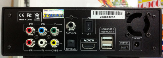 ด้านหลังของตัวเครื่องนั้นจะประกอบไปด้วย ช่องต่อ Component 1 ชุด / AV 1 ชุด / Coaxial 1 ช่อง / Optical 1 ช่อง / สวิตช์ปิด-เปิดเครื่อง / HDMI 1 ช่อง / USB 2 ช่อง / USB Sync PC 1 ช่อง / ช่องเสียบอแดปเตอร์ และมีพัดลมระบายอากาศมาให้อีก 1 ตัว
