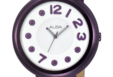 - ตัวเรือนสแตนเลส สายหนังสีม่วง