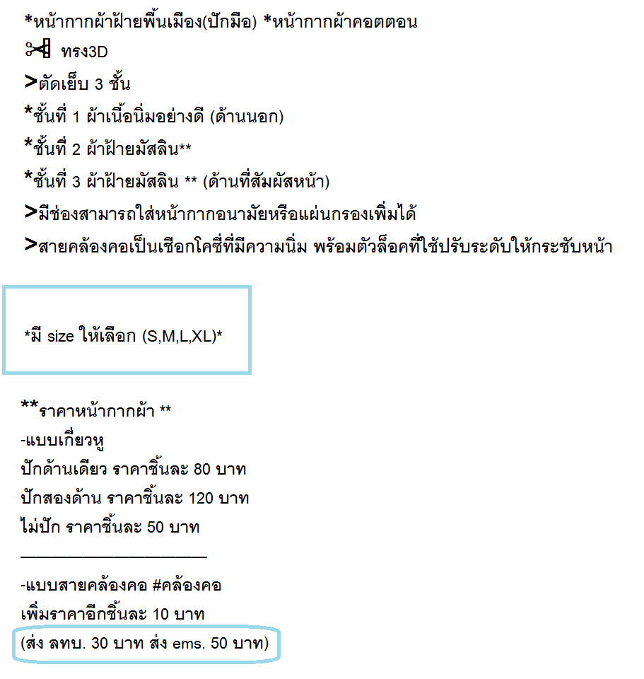 หน้ากากผ้า cotton ผ้าฝ้ายพื้นเมือง