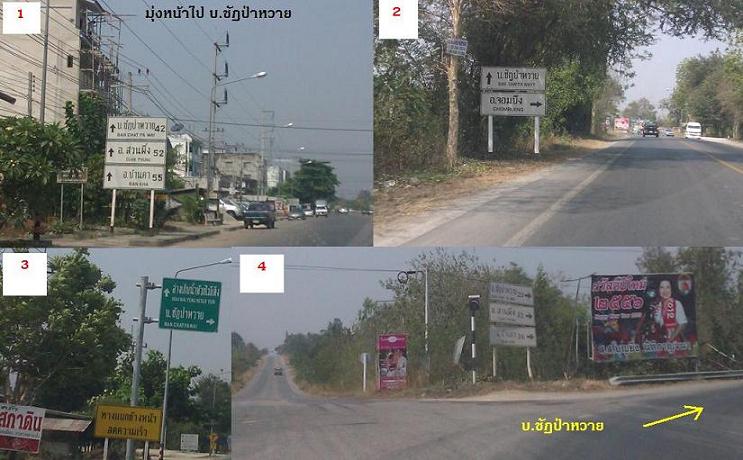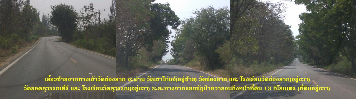 ห่างจากแยกชัฏป่าหวายประมาณ 13 กม. ถนนไปทางวัดช่องลาภ